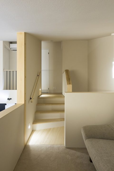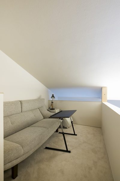 1階と2階をつなぐスキップフロア。ちょっとした籠れるスペースで天井高さを抑えめ。