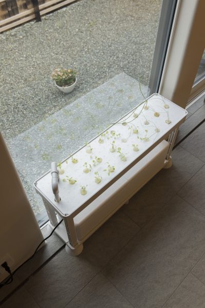 水耕栽培が趣味とのことで、自然光を取り入れる大開口や床はタイル仕上げとした。実際に想定した使い方をされており、趣味を取り入れた生活を楽しんでいただいていることに非常に嬉しく思いました。弊社オーナー様からよくお聞きするのですが、住宅自体が気密断熱,空調環境が整っているので、窓際の植物が非常によく育つそうです。今後の暮らしが楽しみです。
